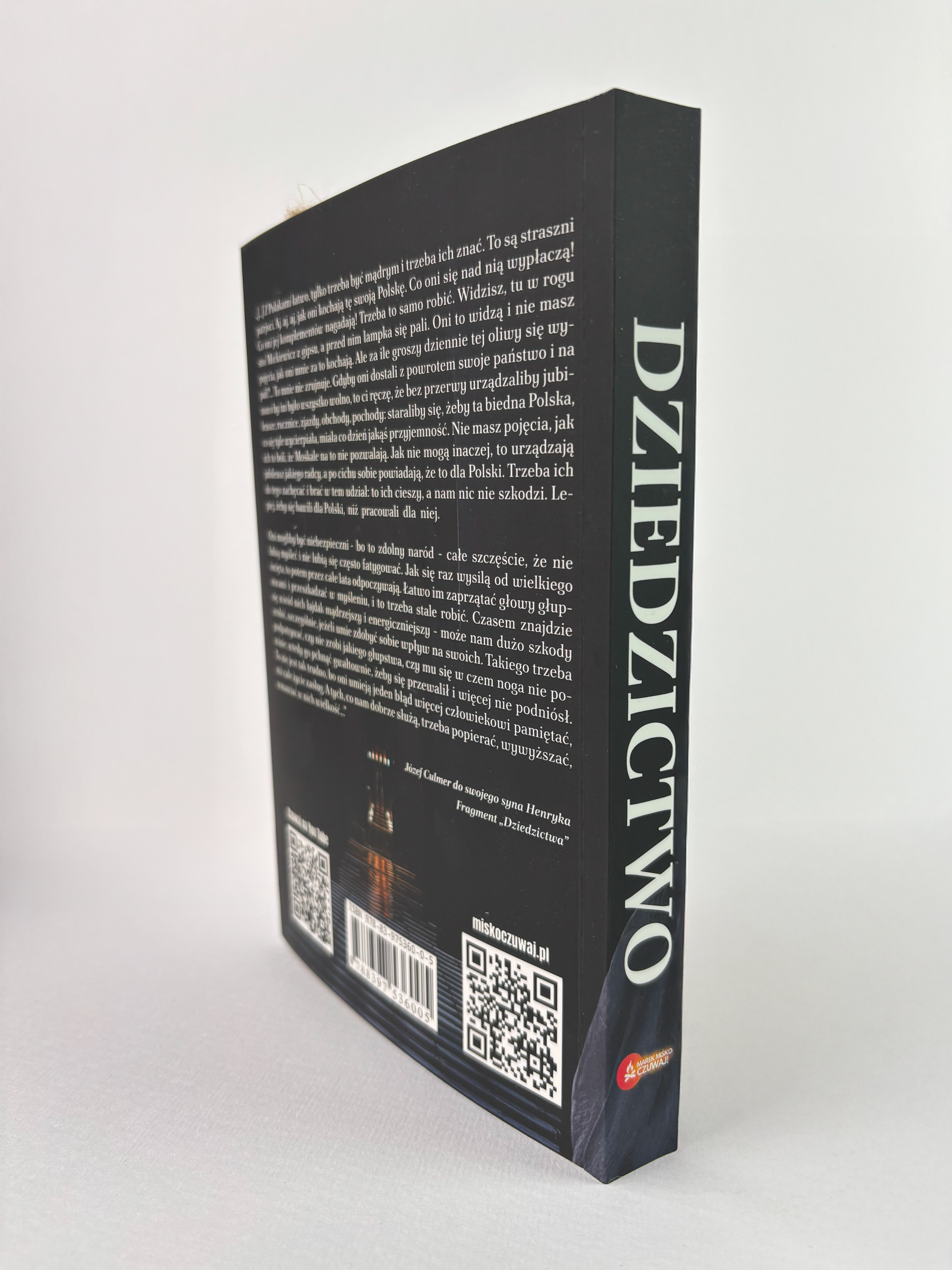„Dziedzictwo” to niezwykle aktualna powieść autorstwa Romana Dmowskiego, która wstrząśnie każdym polskim sercem. Młody dziedzic majątku w Turowie przyjeżdża na pogrzeb swojego stryja. Bardzo szybko okazuje się, że „dziedzictwem”, które zmarły mu pozostawił, są nie tylko posiadłość oraz majątek, ale i wielka tajemnica, mająca kolosalne znaczenie dla przyszłości Polski. Chociaż postaci występujące w powieści są fikcyjne, to sam mechanizm działania; podszyty podstępem, nienawiścią i oszczerstwem, jest już jak najbardziej prawdziwy. Jeżeli więc coraz częściej zadajesz sobie pytanie – gdzie popełniliśmy błąd? Co poszło nie tak? Dlaczego Polska pomimo potężnej wręcz energii swojego Narodu, jest nieustannie w tak trudnej pozycji – to część odpowiedzi znajdziesz właśnie na kartach tej wspaniałej powieści napisanej przez Pana Romana Dmowskiego.