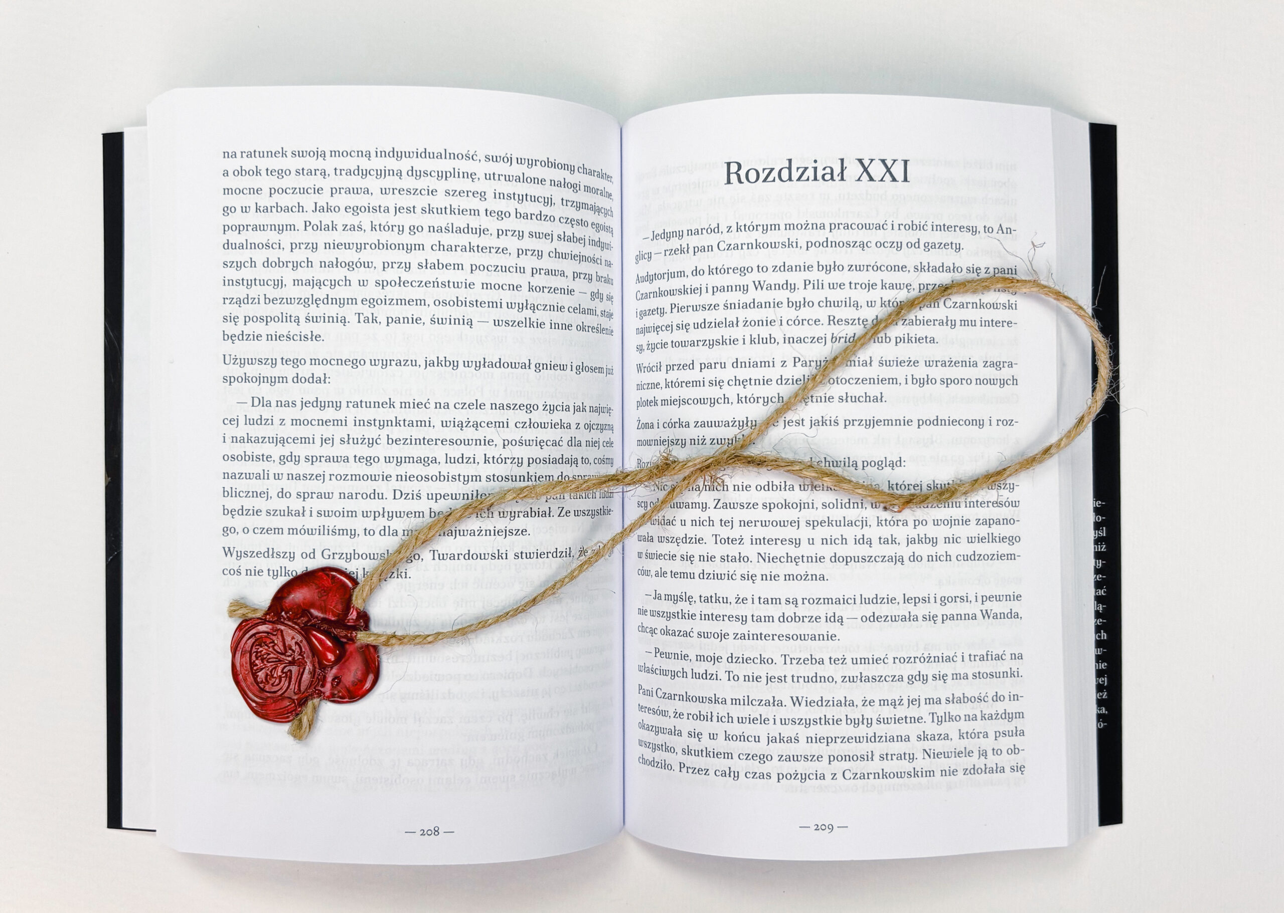 • Zakładka: sznurek jutowy z pieczęcią lakową, wykonane własnoręcznie przez „Czuwajów”.